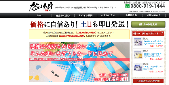 【だいちけ】は商品券の通販ショップなので、忙しい時や近くに金券ショップの店舗が無いという方でも